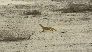 真っ黄色のトカゲ、全長30センチメートルが走る走る。しかも早い。