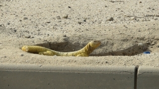聞くところによれば、砂漠に生息するトカゲで、今は住宅に囲まれているこの地域も以前は砂漠だったため取り残されたのではとのこと。